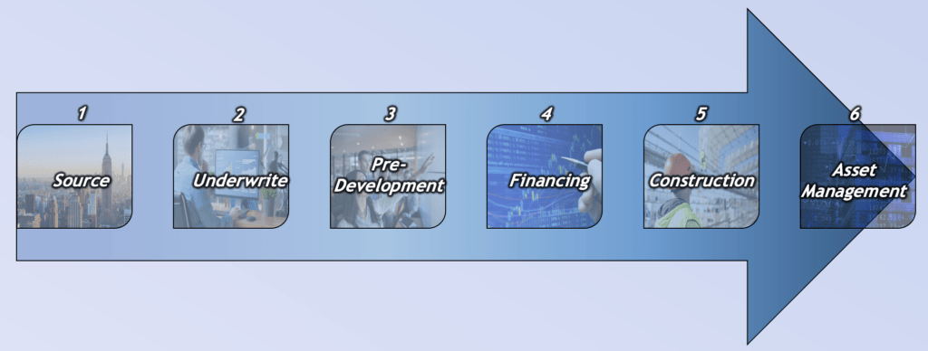 As its primary objective, Barone seeks to achieve high yield opportunistic rates of return for its principals and investors, as opposed to more risk-averse “core” investment opportunities. It endeavors to accomplish this by leveraging a six-stage approach to real estate development that has been curated throughout the company’s 20+ year operating history, characterized by sourcing deals, underwriting investment opportunities, pre-development activities, financing arrangements, construction oversight, and finally asset management. During each stage of the process, Barone implements a carefully refined strategy characterized by in-house expertise and a wide-ranging network of third-party relationships.